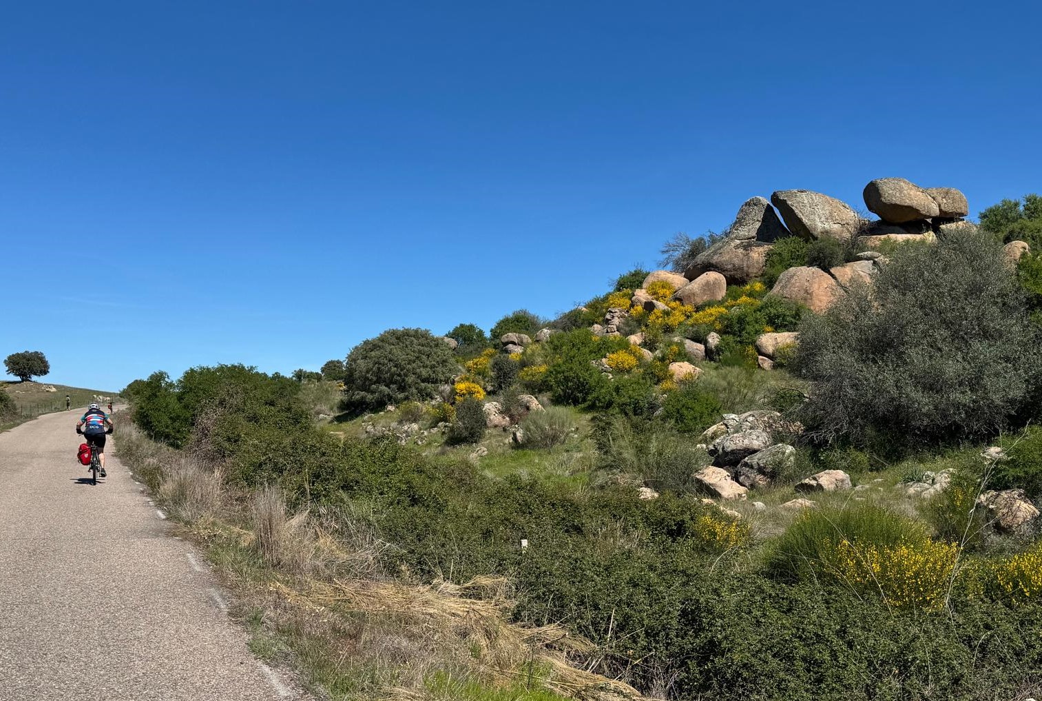 The longest stage but with the most flat terrain and very varied. It starts with a fairly gentle ascent to the last mountain pass in the tour. You then leave the sierra’s of Extremadura behind and enter lower, drier lands in the province of Toledo, cycling through a mix of dehesa, scrubland and Mediterranean ‘maquis’ bush. After crossing another remote area you reach a ‘Via Verde’ cycle path on a former railway which takes you to great views of the river Tagus’ valley.