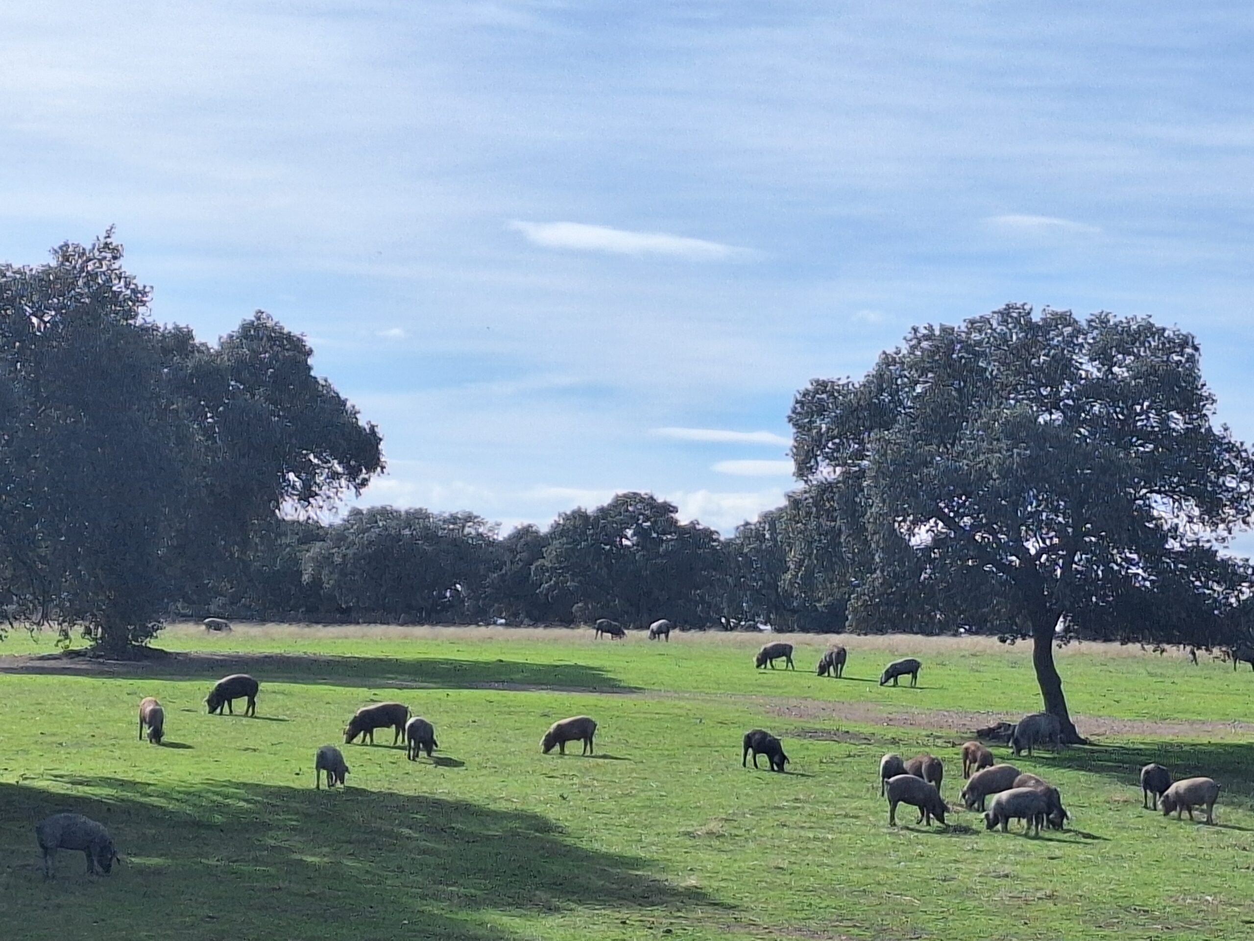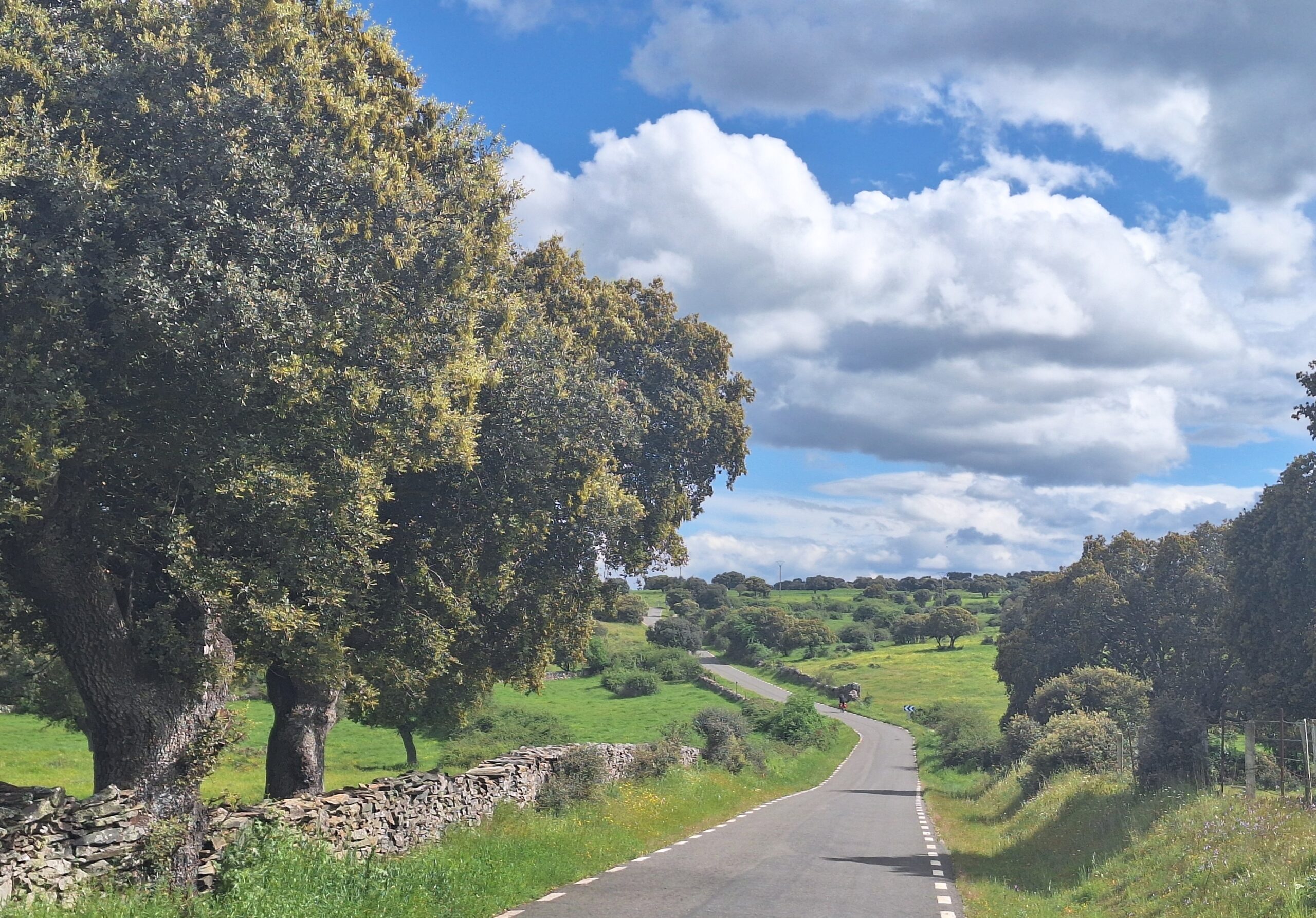 Het eerste deel van deze rit gaat door het meest kenmerkelijk landschap van west-Spanje: de ‘dehesas’ Deze zijn lichte, open bossen van voornamelijk steeneiken waar schappen, Iberische varkens en runderen grazen en tegelijk een uitstekende biotoop vormen voor andere dieren, met name vele soorten vogels.