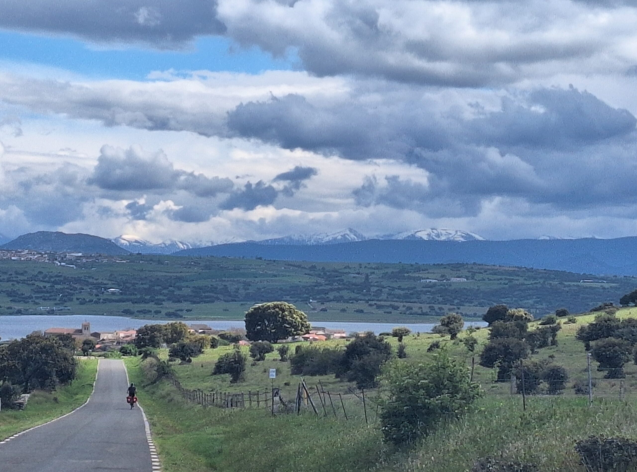 De route begint met 15 km over de Vía Verde de la Plata, een voormalige spoortraject dat nu als fietspad-track dient. Dit leidt je tot aan Alba de Tormes, een oude bedevaartsoord met veel kloosters en kerken rond een leuk centraal pleintje. Je fietst verder langs een rivier en dan een stuwmeer met prachtige vergezichten tot aan Guijuelo, een bijzonder stadje zonder toeristen maar wel de Spaanse ‘hoofdstad’ van de Iberische ‘pata negra’ ham.