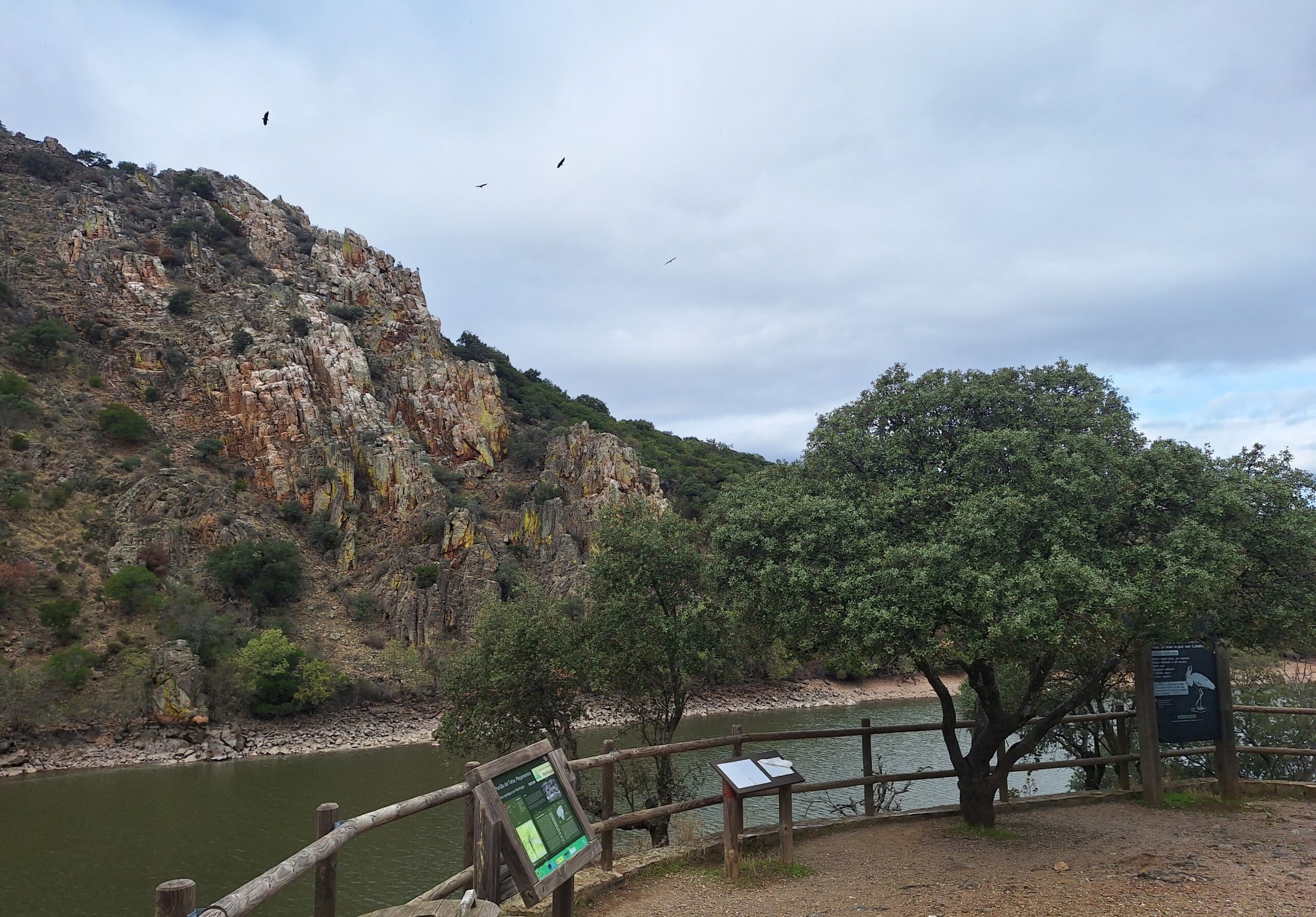 Behalve vermoeidheid we raden de omweg aan want deze maakt de rit een stuk interessanter: je rijdt langs half-verlaten tabaksplantages en dan een tijd langs de rivier de Tiétar, al in het park. Op een kleine weg bereik je meerdere uitzichtpunten op rotspartijen en roofvogels, in het gezelschap van meer herten dan mensen.